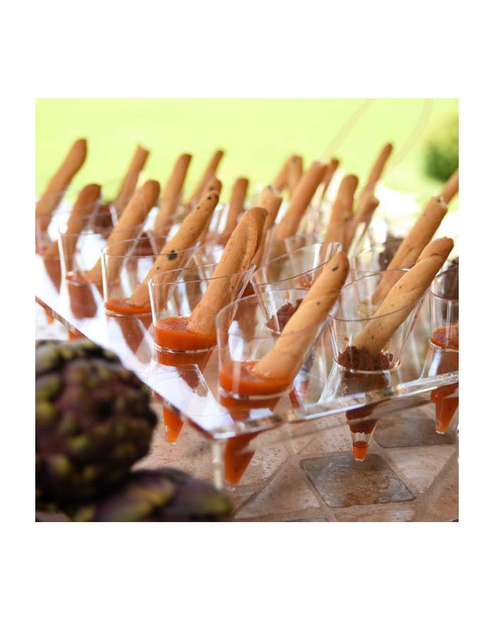 Sweet Flavor mini cone displays are crafted from high-quality reusable acrylic, offering both recyclable and reusable benefits. Specifically designed for Sweet Flavor mini plastic cones with a 1.5 oz capacity, our serving trays enhances the presentation of desserts and appetizers with elegance. Proudly MADE IN USA, these acrylic displays ensure durability and a stylish presentation for your culinary creations. Please note that the display is sold separately from the disposable mini cones, allowing flexibility in your serving arrangements. Displays are available for 12 or 30 mini plastic cones, catering to larger gatherings or buffet setups with equal sophistication and practicality.