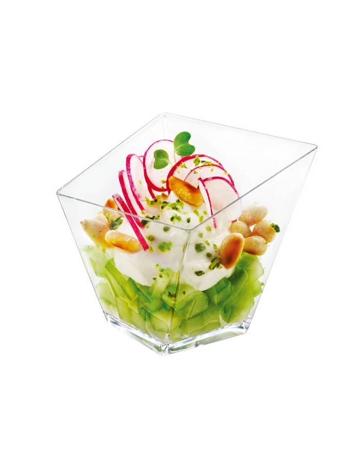 Disposable and recyclable, these mini twisted sample cups, with a capacity of 2 ounces, are crafted from high-quality recyclable injected plastic. Their elegant and unique design makes them the perfect choice for your next event. Affordable yet stylish, they are ideal for serving appetizers, desserts, or samples, and will add a touch of sophistication to any occasion. Sweet Flavor's twisty mini plastic cups are also available in a larger 5-ounce size, providing versatility to suit your serving needs. Whether for a formal gathering or a casual party, these mini twisted cups will enhance the presentation and impress your guests.