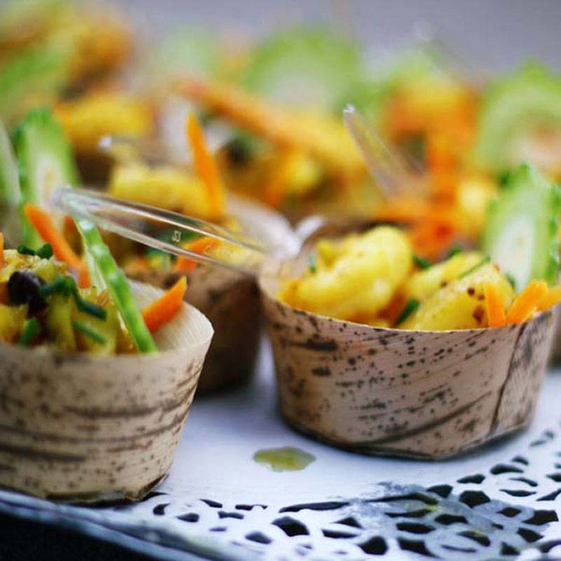 Form and function blend with style and sustainability in Sweet Flavor’s popular line of catering supplies. Ideal for hot and cold foods, our dinnerware, flatware and drinkware collection are sourced from the best materials worldwide and are food-safe and FDA approved. From elegant dual compartment serving cups to distinctive dessert boards, at Sweet Flavor, we strongly believe in harmony between food and the containers they’re presented in.