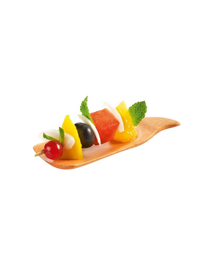 Introducing the Sweet Flavor Kiva catering bamboo spoon. Its original shape makes this beautiful bamboo spoon a standout choice. Reusable and biodegradable, it’s perfect for serving amuse-bouche, hors d'oeuvres, and appetizers. Ideal for banquets, catering events, weddings, and more, these spoons combine style with sustainability. Explore the variety of bamboo catering spoon designs offered by Sweet Flavor to find the perfect fit for your next event. Visit our website to see more: Bamboo Dishes. Enhance your food presentation with our elegant and eco-friendly Kiva bamboo spoons.