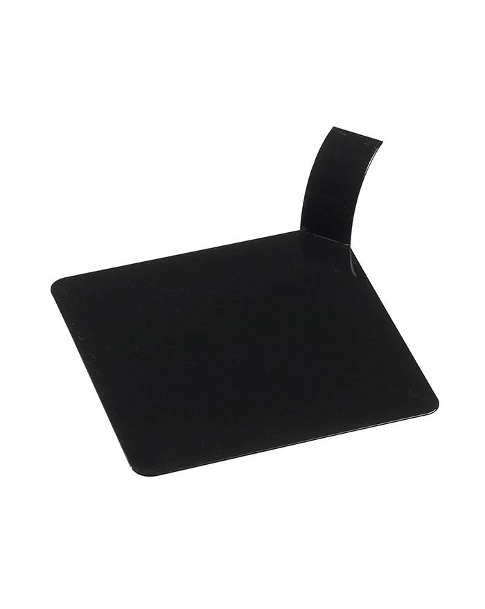 Pack of 100 Square Black Recyclable Single Serve Dessert Board with tab 3 in.Fancy way to display first class pastries. Those square small dessert plates are recyclable and perfect for appetizers, pastries, cupcakes and more.