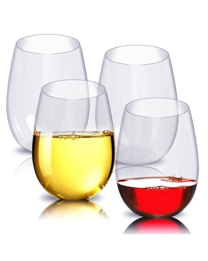 Impress your guests with this 12 oz. plastic disposable stemless wine glass! Add a really chic touch to your table with this heavy duty recyclable stemless wine glass! Perfect for white and red wine. Its crystal clear finish make it looks like real glass. Really sturdy and this stemless plastic wine glass is BPA Freee and recyclable. Hand Wash Only.