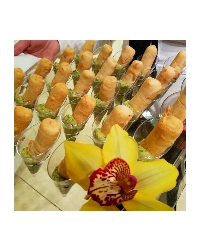 Elevate your buffet presentations with these elegant mini plastic cones, designed to add a touch of whimsical sophistication to any occasion. Disposable and recyclable, our mini plastic cones are ideal for serving desserts, hors d'oeuvres, and small appetizers with style and convenience. Their graceful design enhances the visual appeal of your culinary creations, ensuring a memorable dining experience for your guests. Perfectly complementing our acrylic cone holders with 12 and  30 holes (sold separately) these mini plastic sample cones offer both practicality and aesthetic charm, making them a preferred choice for caterers and event planners looking to impress with their food displays.