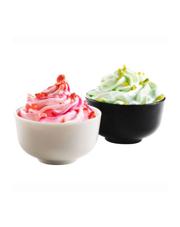 Disposable and recyclable, Sweet Flavor mini bi-color plastic bowls are both unique and elegant, making them ideal for a variety of occasions such as off-premise catering, receptions, and poolside parties. These attractive and affordable bowls will impress your guests with their stylish design and practicality. Made from high-quality recyclable plastic, they offer a sustainable option without compromising on aesthetics. Additionally, Sweet Flavor disposable mini bowls are available in classic black and a larger 10-ounce size, providing versatility for different serving needs. For added convenience, matching lids are also available, ensuring your dishes remain fresh and presentable.