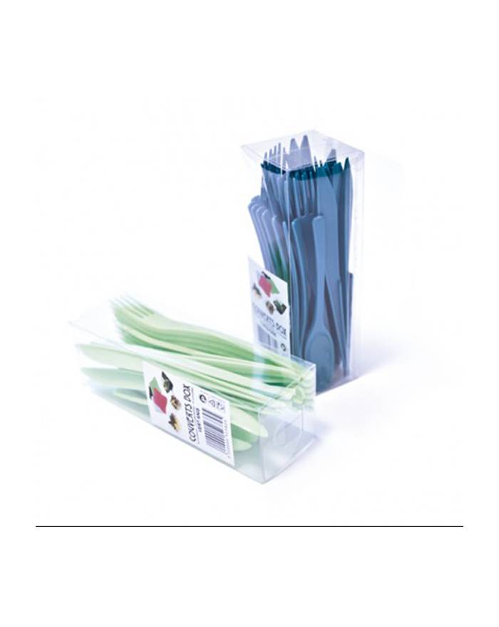 Nice looking for these grey upscale and contemporary disposable plastic cutlery set that includes 10 plastic forks, 10 plastic knifes as well as 10 plastic spoons.
