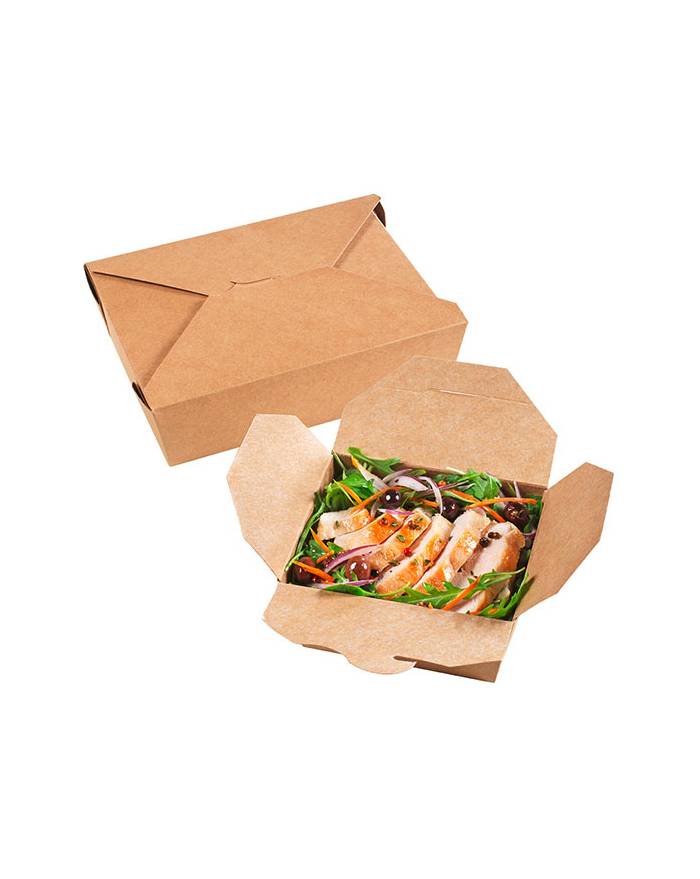 Sweet Flavor's Kraft Paper Takeaway Container, available in a natural brown hue, are a popular choice for all types of takeaway food items. With an easy-to-close design and inner lining, our to-go boxes are grease and leak-resistant, ensuring food stays fresh and secure. In a variety of sizes and package quantities, our containers are ideal for restaurants, bakeries, food trucks, hotels, resorts, and caterers. With a competitive quality-to-price ratio, they offer excellent value for any foodservice operation. Sold in boxes of 200 pieces, our containers are FDA compliant, providing both safety and reliability for your business.