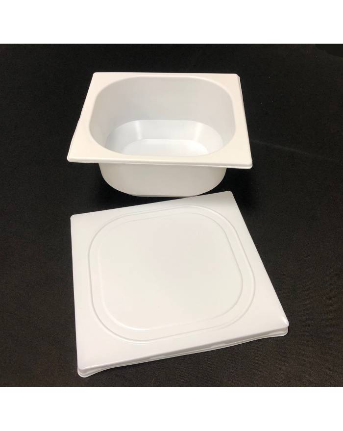 Sweet Flavor Lid for 1 liter white rectangular ice cream container.