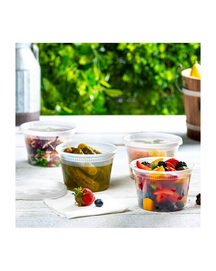 Heavy Duty Microwavable Translucent Plastic Deli Container. If your customers can't get enough of your food an or desserts, lets offer them the possibility to take it home in Sweet Flavor clear deli container. Perfect for deli store, salad bars, food trucks or takeout-out restaurant this take out container is simply perfect for transportation. Leak proof, our deli container will keep leftovers secured on the way home when paired with compatible lid (sold separately). Recyclable, this container holds 32 oz.