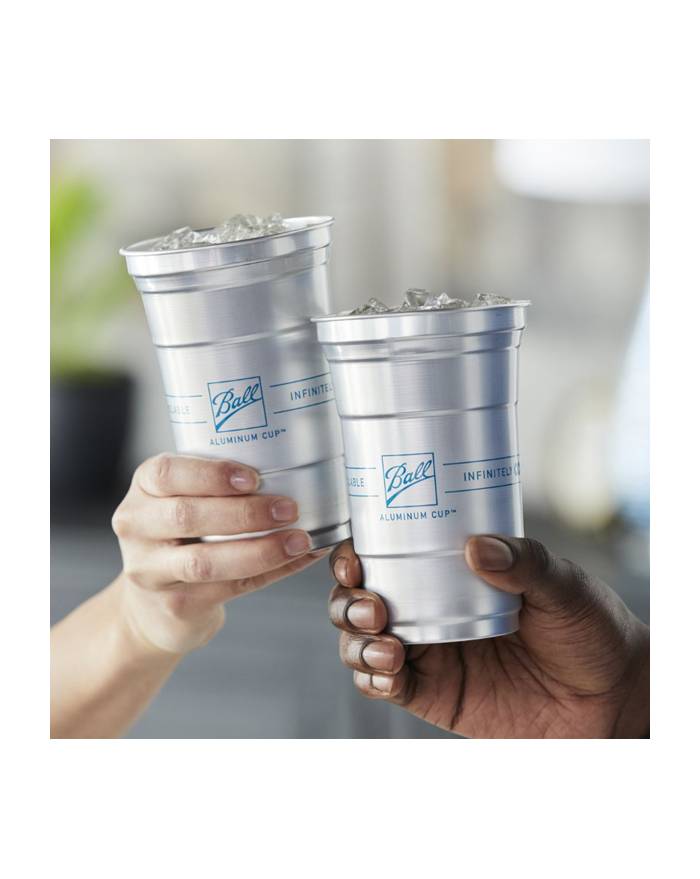 Why using plastic single use cups when you can serve drinks in Ball reusable aluminum cups. Made from premium 100% recyclable aluminium, these ball cups 24 oz. are simply perfect to serve you cold drinks such as beers, sodas and any other beverages.